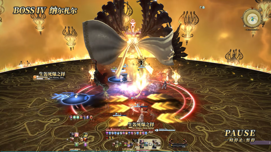双子神有一系列极具特色的技能名,机制也颇为有趣。原理是存在一橙一蓝两种类型的aoe,一为真一为假,需要根据背景色进行判断。接下来出现的同系列名称基本都是围绕这个机制设计的。