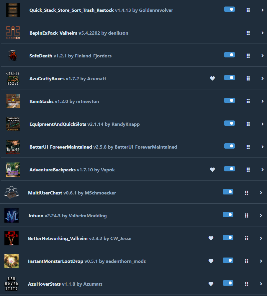 - BepInExPack&Jotunn:默认的依赖模组,不用管